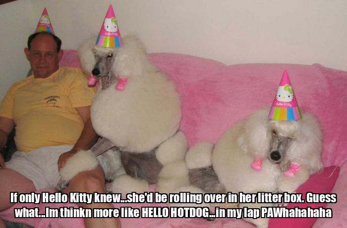 If only Hello Kitty knew...she'd be rolling over in her litter box. Guess what...Im thinkn more like HELLO HOTDOG...in my lap PAWhahahaha