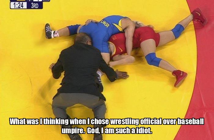 What was I thinking when I chose wrestling official over baseball umpire. God, I am such a idiot.