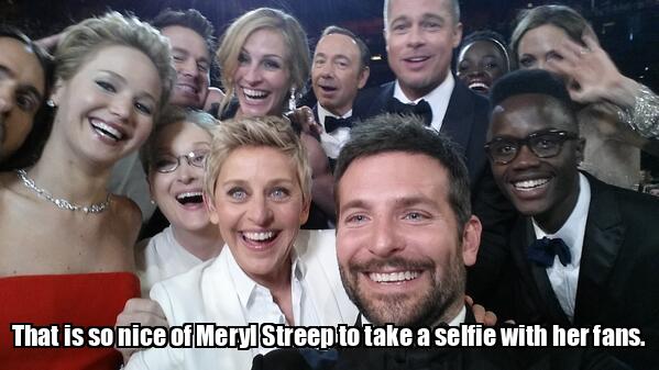 That is so nice of Meryl Streep to take a selfie with her fans.