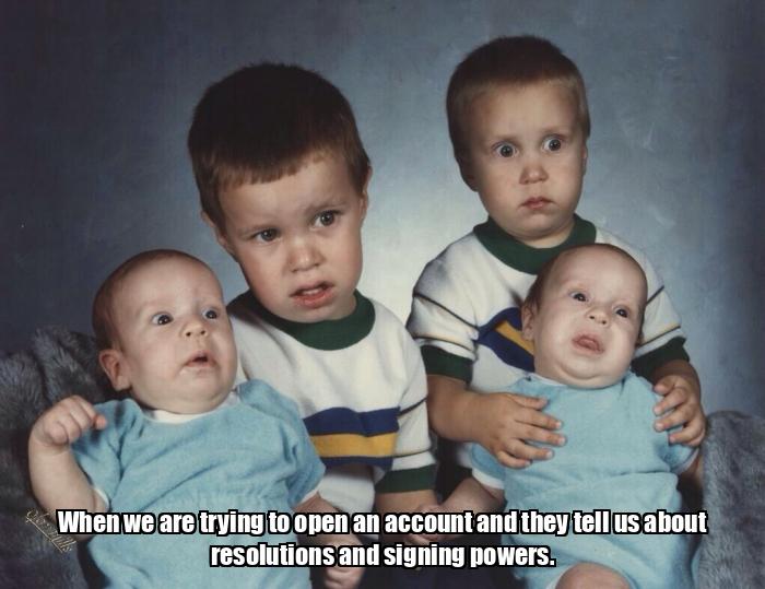 When we are trying to open an account and they tell us about resolutions and signing powers.