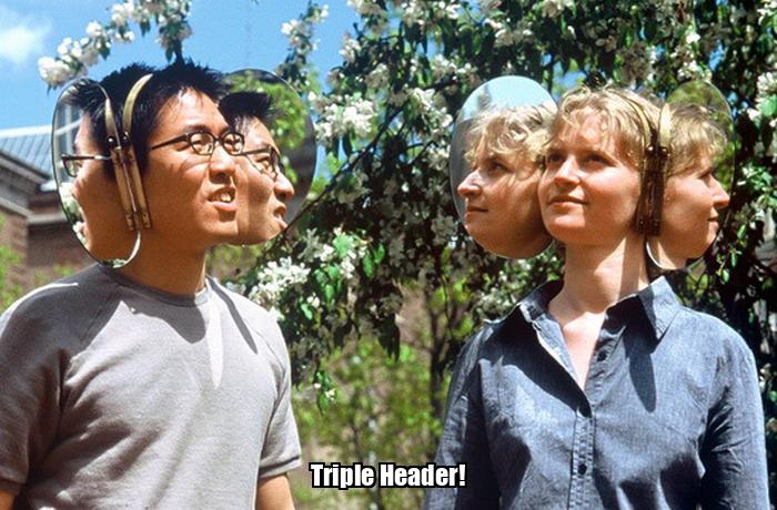 Three heads to give 'head' is better than one......'69' is a triple play.