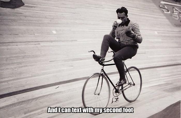 Having recently been arrested for texting while driving, he thought he would give this a try.