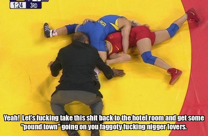Yeah! Let's fucking take this shit back to the hotel room and get some "pound town" going on you faggoty fucking nigger lovers.