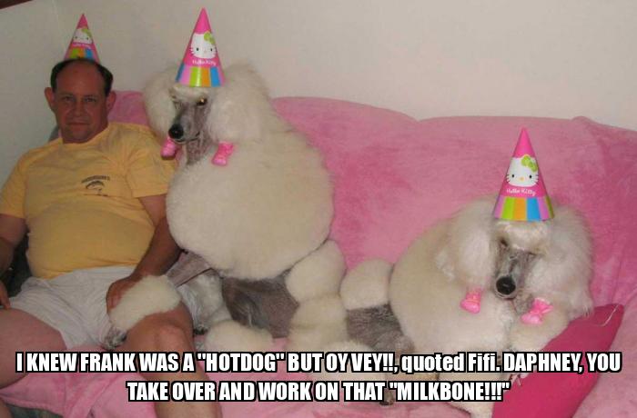 I KNEW FRANK WAS A ''HOTDOG'' BUT OY VEY!!, quoted Fifi. DAPHNEY, YOU TAKE OVER AND WORK ON THAT "MILKBONE!!!"