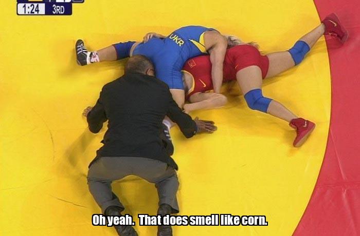 The referee calls a Near PIn when the dreaded "head fart" move causes paralysis....