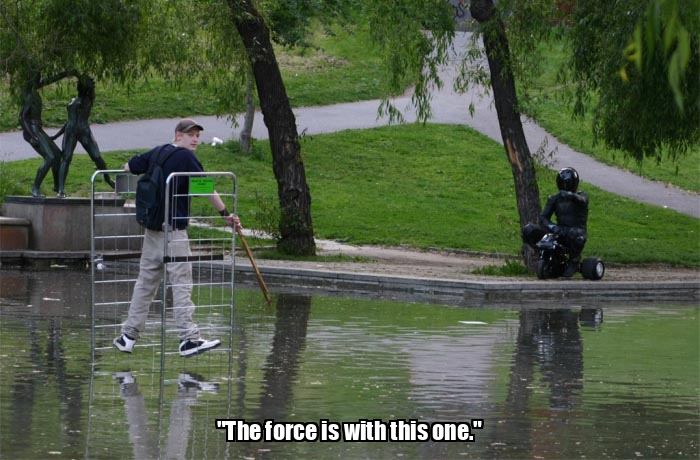 Cage Stilts, Epic Ninja with Equally Epic Trike and wrestling statues. SO. MUCH. WIN!!!!!!!