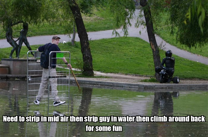 Need to strip in mid air then strip guy in water then climb around back for some fun