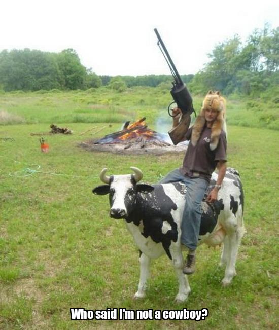 Yes, this is a real cow. yes, this is a real gun. yes, this is a real rolex!