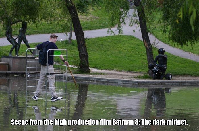 Cage Stilts, Epic Ninja with Equally Epic Trike and wrestling statues. SO. MUCH. WIN!!!!!!!