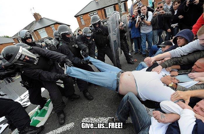 The police soon realized that the crowd was going to make it impossible to arrest Stretch Armstrong.