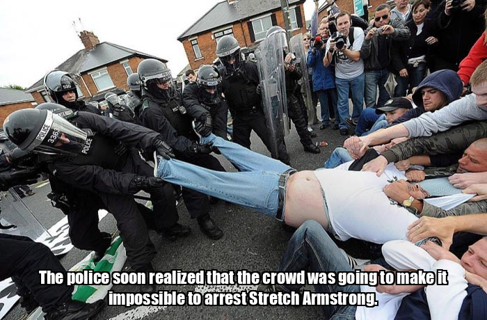 The police soon realized that the crowd was going to make it impossible to arrest Stretch Armstrong.