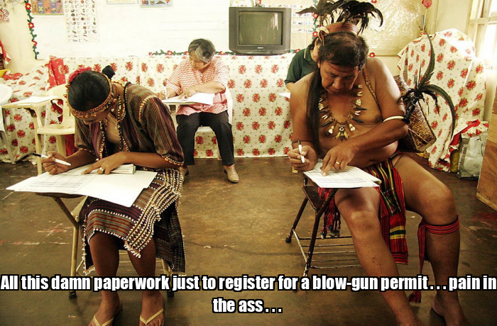 All this damn paperwork just to register for a blow-gun permit . . . pain in the ass . . .