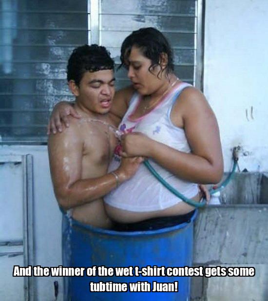 And the winner of the wet t-shirt contest gets some tubtime with Juan!