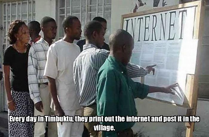 Every day in Timbuktu, they print out the internet and post it in the village.